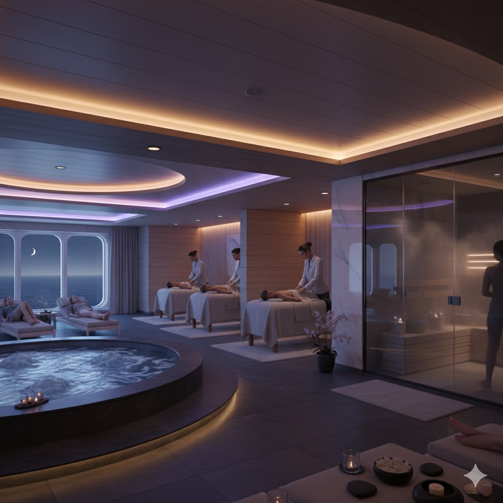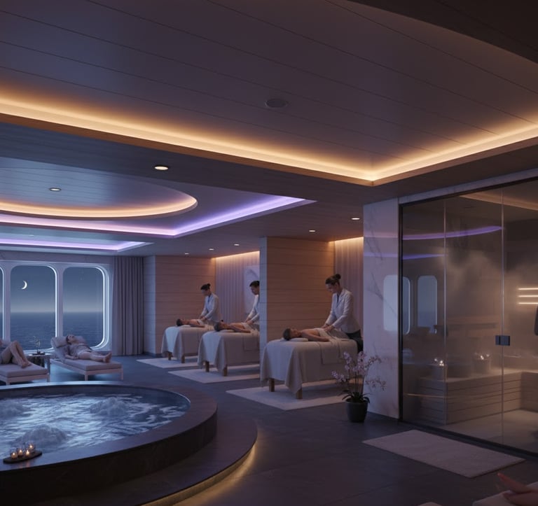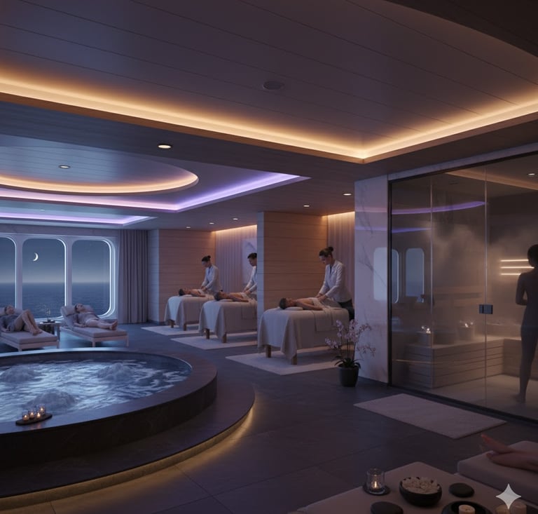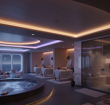 Después de un día de aventura o simplemente para desconectar, los spas de los cruceros ofrecen un refugio de paz absoluta. Diseñados para revitalizar cuerpo y mente, combinan tratamientos de lujo con vistas panorámicas al océano.