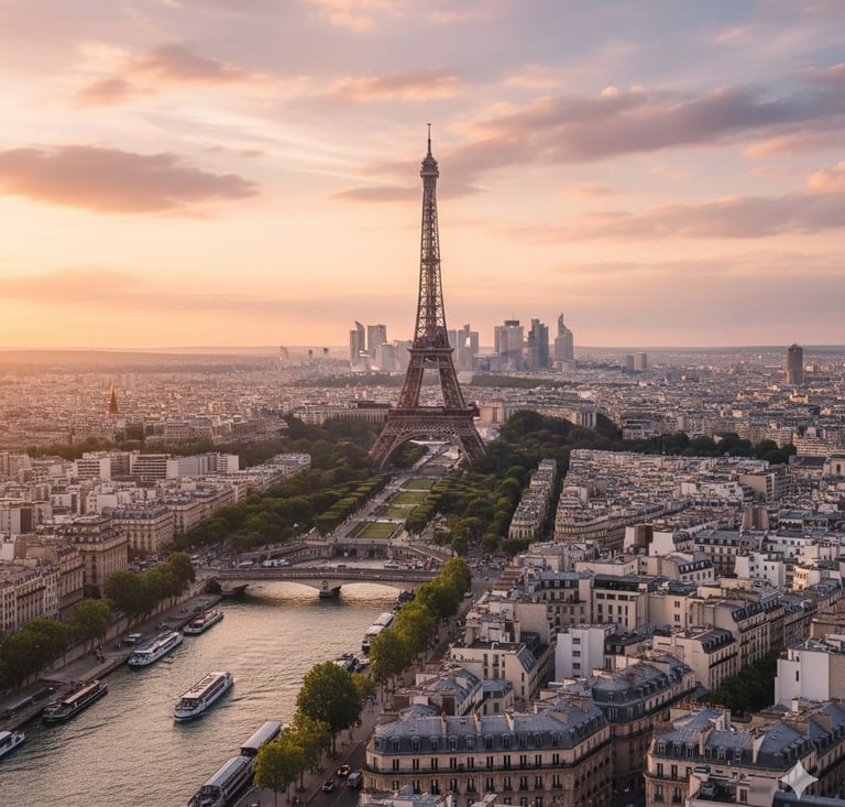 Visita la Torre Eiffel: Sube para una vista panorámica espectacular de la ciudad al amanecer o al atardecer.